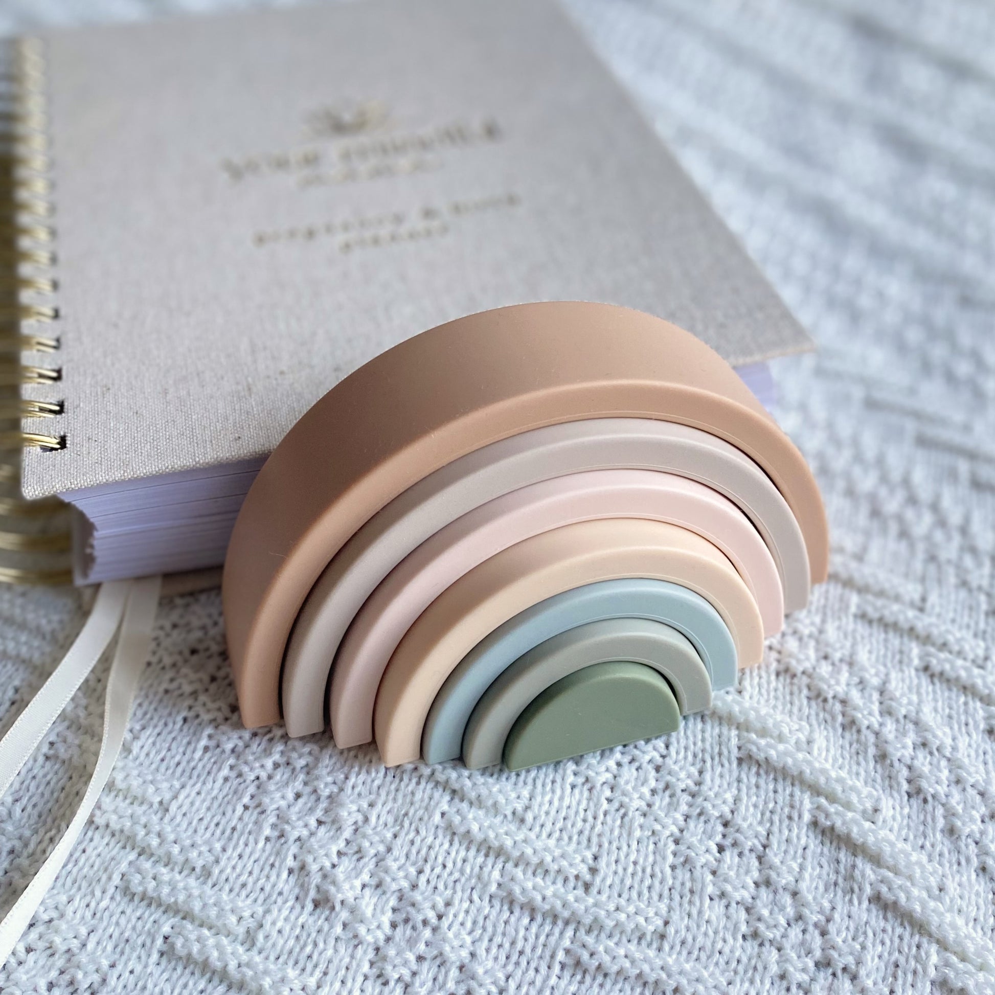 Perfect Gift for Expecting Families: Looking for the ideal baby shower gift? The Silicone Stackable Rainbow Puzzle pairs wonderfully with our Pregnancy & Birth Book or Baby Milestone Sets, making it a thoughtful present for any pregnant friend.
